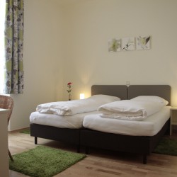 Unser Haus verfügt über 9 Zimmer mit insgesamt 24 Betten, aufgegliedert in Einzelzimmer, Doppelzimmer sowie kleine Wohneinheiten mit Doppel- und Zweibett- bzw. Einzelzimmer für 3 oder 4 Personen (sogenannte Studios) – ideal für Familien oder Freunde.